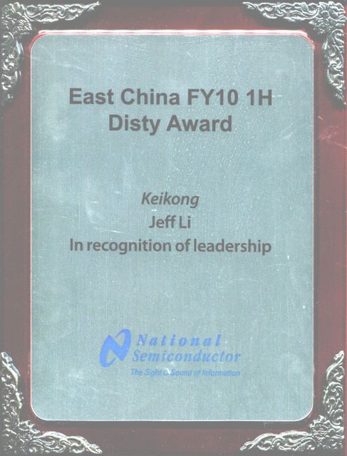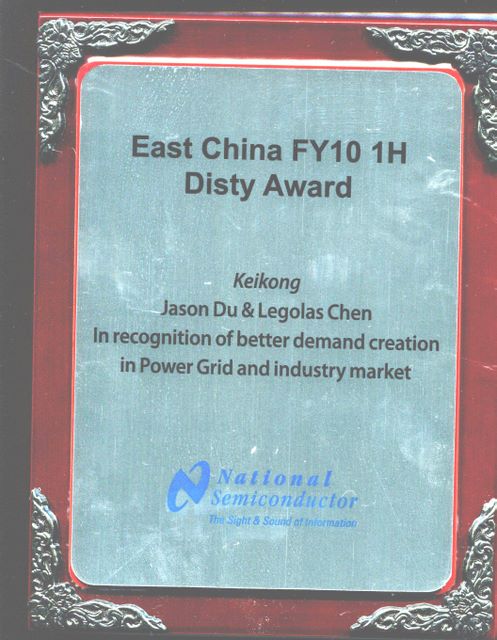 经过各位同事的努力,在Q4CY09 棋港(上海) 获得了NS华东授予的如下表彰