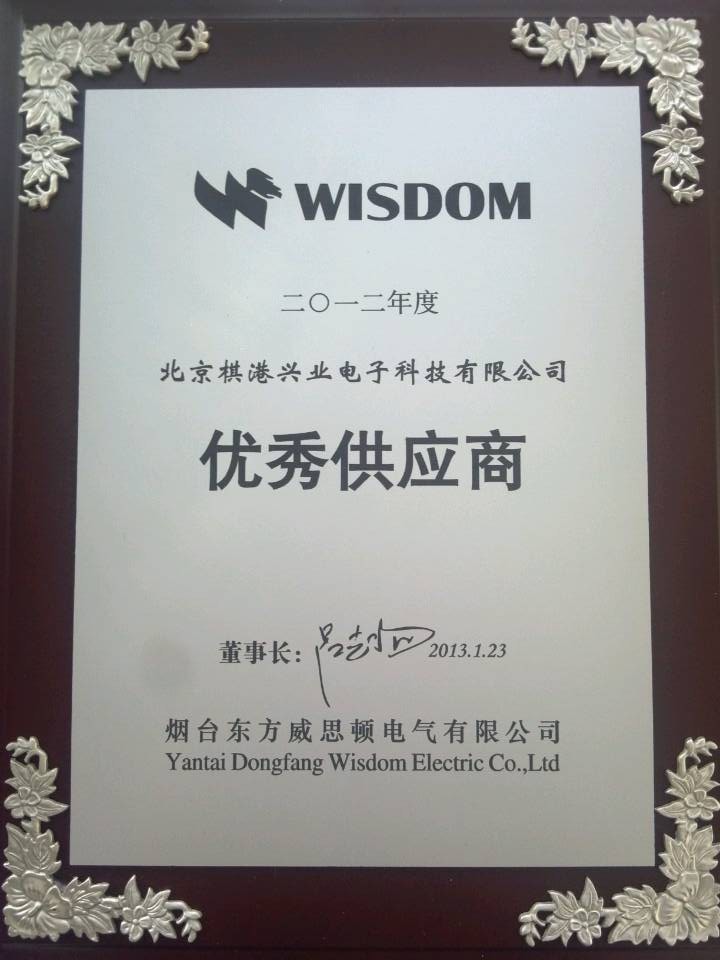 棋港青鳥办代表棋港电有限公司于 2013年1月 23日参加了威思顿的十周年庆典,  同時,我司被评为东方威思顿的"优秀供应商".   附件是奖牌.